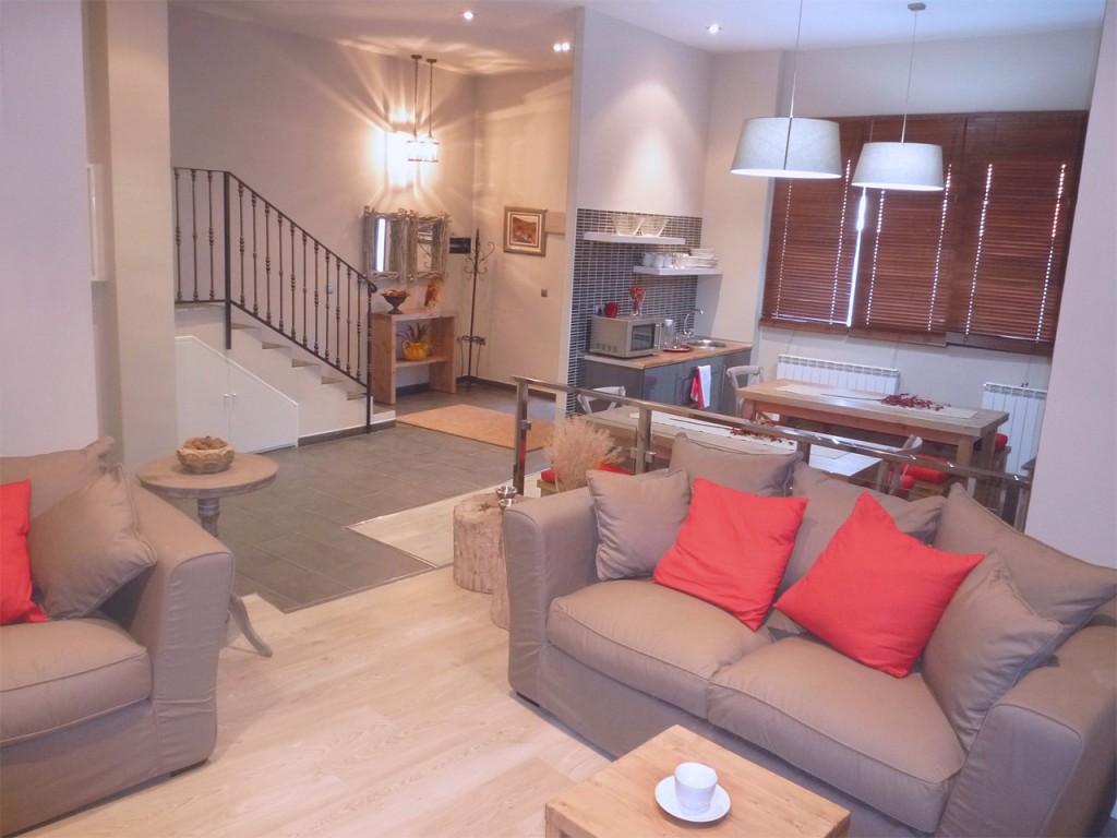 Imagen de la Sala de estar y la escalera de acceso a las habitaciones en el Hotel Rural El encanto del Moncayo